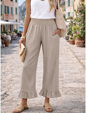 Dam Konstbomullslinne Trosor Brett skaft Kinesiska Semester Streetwear Grundläggande Ankellång Medium Midja Ensfärgat Slät Ficka Elastiskt midjeband Bekväm Andningsfunktion Microelastisk Dagligen
