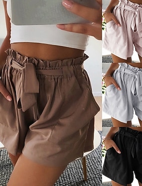 Dam Shorts Sommarshorts Beach Shorts Casual shorts Semester Mode Streetwear Kort Hög midja Slät Snörning Ficka Elastisk midja Komfort Mjuk Bekväm Elastisk Utomhus Gata Helgdag Mörkgrön Aprikos Svart