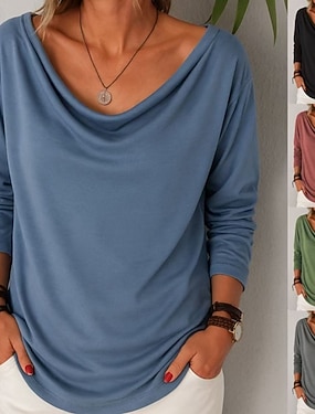 Dam T-shirt Konstbomullslinne T-tröja Slät Mode Stylish Klassisk Långärmad Skorstenskrage Vanliga toppar Dagligen Utekväll Helgen Svart Marinblå Brun Grön Grå Vår Höst