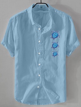 Herr Skjorta Linneskjorta Sommarskjorta Strandskjorta Knapp upp skjorta Sköldpadda Semester Helgdag Svart Vit Rodnande Rosa Blå Kortärmad Nedvikt Sommar Kläder