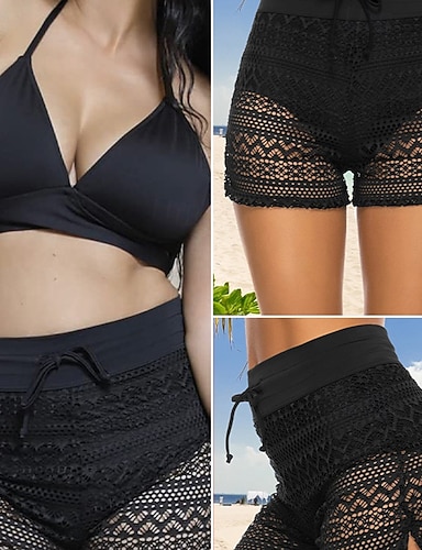 Dam Badkläder Stretchiga boxershorts Shorts Baddräkt Rynkad Snörning Hög midja Semester Standkläder Ensfärgat Ärmlös Baddräkter