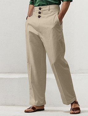 Herr Linne Byxor Långbyxor Kostymbyxor Sommarbyxor Knappar Rakt ben Slät Komfort Andningsfunktion Fullängd Företag Dagligen Streetwear Stylish Svart Vit