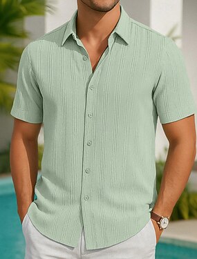 Herr Skjorta linneskjorta Strandskjorta Semester Helgdag Svart Blå Grön Kortärmad Nedvikt Sommar Kläder