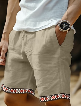 Herr Shorts Linne Shorts Sommarshorts Beach Shorts Snörning Elastisk midja Slät Blomma Komfort Andningsfunktion Knelängd Utomhus Dagligen Helgdag Etnisk Stil Retro / vintage Vit