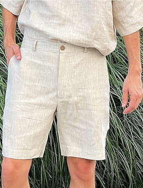 Herr Shorts Linne Shorts Klänning Shorts Sommarshorts Beach Shorts Dragkedja Knappar Ficka Slät Komfort Andningsfunktion Knelängd Utomhus Företag Dagligen Mode Stylish Himmelsblå Grön Oelastisk