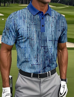Herr Golf Gradient ränder Våffelpikétröjor Golftröja Kortärmad Polotröjor Skjortor med krage Sportkläder Ledigt Utomhus Fritids- Dagliga kläder 3D-utskrift Knappar Sommar Blå Purpur Grön