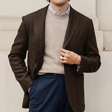 Herr Kavajjacka Tweed -blazer Naggkrage Mode Klassisk Ledigt Solid färg Blazer Tweedkavaj Svart Armégrön Skräddarsydd passform Enkelknäppt tvåknappar