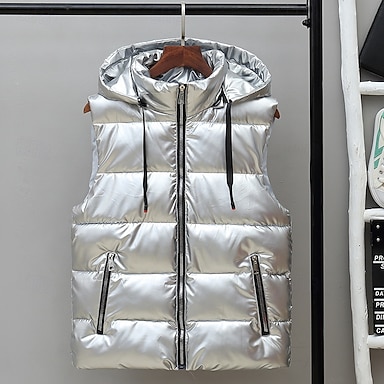 Herr Pufferväst Väst Gilet Semester Dagligen Datum Mode Ledigt Höst vinter Ficka Polyester Håller värmen Bekväm Ensfärgat Dragkedja Huva Normal Silver Svart Rubinrött Mörk silver Väst