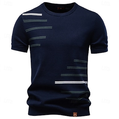 Herr T-shirt Kortärmad tröja T-tröja Kortärmad Rund hals Sommar Vår Randig Streetwear Stylish Modern Lappverk Ledigt Dagligen Utomhus Vit Svart Grå Topp t-shirt för män
