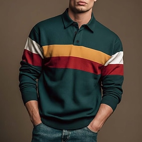 Herr Horisontella Strips Rugby Polo Långärmad Polotröjor Skjortor med krage Sportkläder Ledigt Utomhus Skola Fritids- 3D-utskrift Vår Höst Vinter Blå Rubinrött Grön