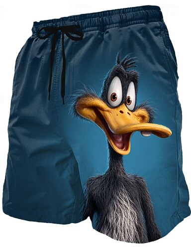Herr Rolig Anka tecknade djur Badshorts Baddräkter Badshorts Boardshorts Medium Midja Hawaiisk Strandsemester Sidfickor Mesh foder Elastisk dragsko i midjan Designer Kläder