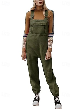 Dam Vanligt Jumpsuits Aktiv Ensfärgat Ärmlös Brett skaft U-hals Ficka Knappar Dagligen Semester Lös passning Svart Vin Ljusbrun Sommar