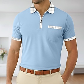 Herr Pikétröjor Ledigt Helgdag Kinakrage Kortärmad Grundläggande Modern Rutig Färgblock Knappar Sommar Vår Blå Marinblå Purpur Brun Grön Pikétröjor