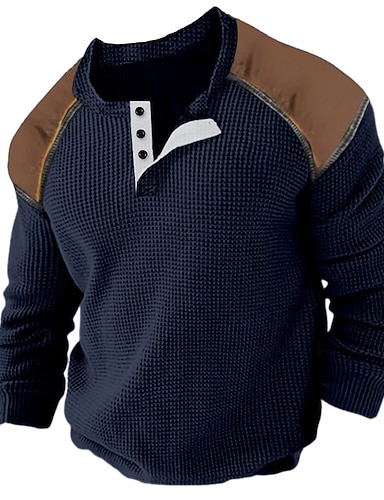 Herr Waffle Henley Shirt T-tröja Färgblock Henley Gata Semester Långärmad Kläder Mode Designer Grundläggande