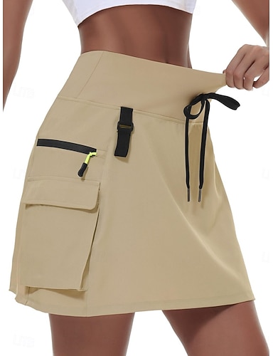 Dam Solid färg Avslappnad kjol Tenniskjolar med shorts Sportkjol Snörning Ficka Hög midja Elastisk Svettavvisande Andningsfunktion Tennis Golf Pickleball Kjolar Brist Svart Vit Blå Tenniskläder