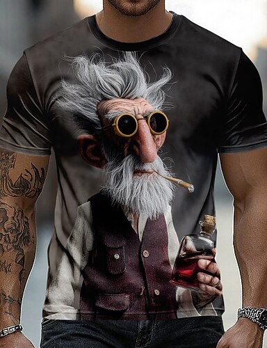 Herr Nyans Gammal man T-shirt Kortärmad T-shirt 3D-tryck Rund hals Skjorta Rolig Ledigt Dagligen Gata Blå Kaki Grå Sommar Vår Kläder S M L XL 2XL 3XL