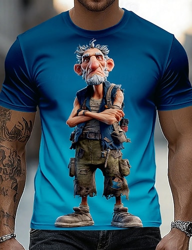 Herr Nyans Gammal man T-shirt Kortärmad T-shirt 3D-tryck Rund hals Skjorta Rolig Ledigt Dagligen Gata Blå Grå Sommar Vår Kläder S M L XL 2XL 3XL