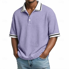 Herr Våffelpikétröjor Ledigt Helgdag Nedvikt Kortärmad Grundläggande Modern Färgblock Strukturerad Färgblock Knappar Sommar Vår Alla årstider Normal Blå Svart Purpur Grön Våffelpikétröjor