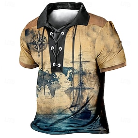 Herr Tempelriddare Pikétröjor Kortärmad Polotröjor Kavajslag Vintage Ledigt Streetwear Dagliga kläder 3D-utskrift Nättyg som andas Vår & sommar Brun