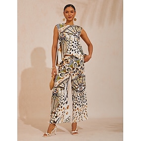 Dam Badkläder Bikini Shorts Baddräkt Halterneck 2 st Korsvis Stylish Tryck upp Slät Ärmlös Baddräkter