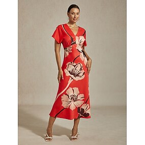 Dam Midi klänning Midiklänning Orange Kortärmad Folk Tryck Vår & sommar V-hals Mönster klänning S M L