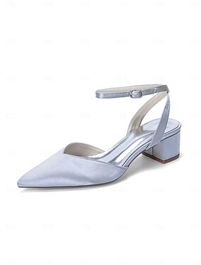 Damskor i silverfärgad brudklack – eleganta brudskor med spetsiga tå och fotledsrem för trädgårdsbröllop