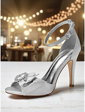damsandaler i satinblockklack i silver med strass utsmyckningar - eleganta bröllops- och kvällsbalskor