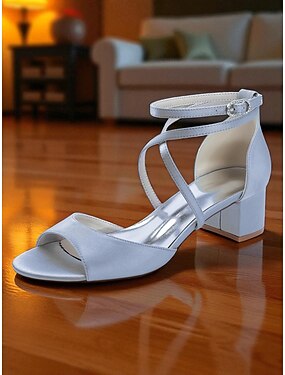 Damsandaler med blockklack i satin och fotledsrem – eleganta klänningsskor med öppen tå för cocktailpartyn och kvällsoutfits