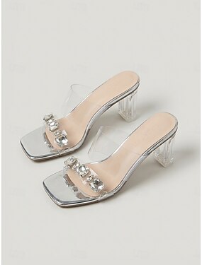 Damsandaler med genomskinlig hög klack, transparenta slip-on-klackar med rem för cocktailparty och bal &kvällsevenemang
