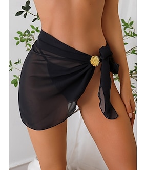 Dam Badkläder Täck Över Badshorts Wrap Baddräkt Volang Sexig Semester Slät Ren färg Ärmlös Baddräkter