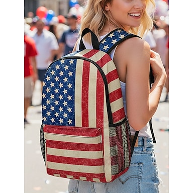 Unisex ryggsäck med polyestertryck, vintage amerikansk flaggdesign, stor kapacitet, hållbar, perfekt för 250-årsjubileum, självständighetsdagen, vardagsresor och utomhusbruk