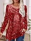 Jul Kvinnors Sammet Kvällstoppar Paljetttoppar Enfärgad Elegant Fest Stilig Långärmad Rund Halsringning Drapeade Höga Toppar Arbetsfest Kläder Kvällsfest Paljetter Draperade Svart Röd Blå Guld Vår