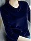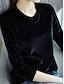Kvinnors sammet blus enfärgad elegant stilig avslappnad lång ärm halsringning regular toppar dagliga svart vin marinblå lila grön vår höst vinter