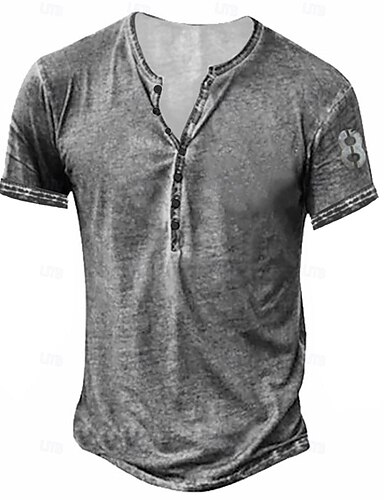 Herr Stam T-shirt Henleytröja T-shirts Kortärmad Vintage Designer Grundläggande Utomhus Ledigt Dagligen Sommar Mörkbrun Svart Grön Blå Ljusgrå Henley Henley T-shirt