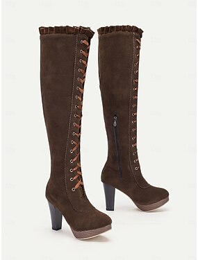 bruna viktorianska kängor med snörning för kvinnor - retrostil med plattformsklack, perfekt för cosplay och vintageinspirerade outfits