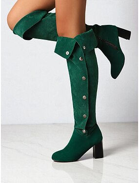 Damstövlar i vinröda, vikbara mockastövlar med blockklack och dekorativa knappar – mångsidiga höststövlar &vintermodeskor för snygga streetwear- och utekvällar