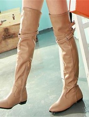 platta stövlar i beige över knäet för kvinnor med dragkedja i sidan och spänne, eleganta och vardagliga för vardagsbruk
