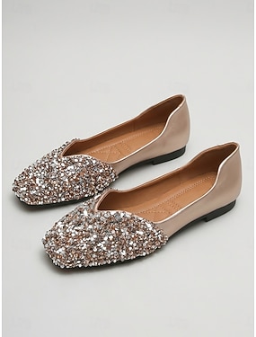 Damskor med champagnefärgade strassmönster, eleganta slip-on-skor med tå för brudens mor, trädgårdsbröllop &formella evenemang