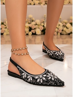 Damskor med slingback och guldfärgade kristaller, eleganta brudskor med spetsiga tår för modernt stadsbröllop