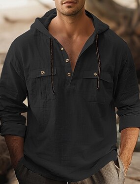 Herr Skjorta linneskjorta Sommarskjorta Strandskjorta Huvtröja Slät Ledigt Dagligen Svart Vit Brun Kaki Långärmad Huva Vår & sommar Kläder