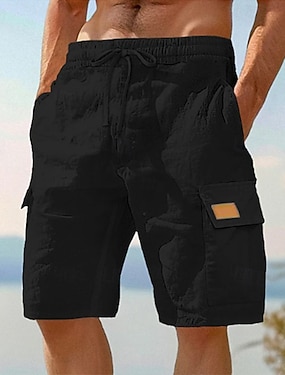 Herr Cargo-shorts Linne Shorts Sommarshorts Beach Shorts Snörning Elastisk midja Flera fickor Slät Komfort Andningsfunktion Knelängd Utomhus Dagligen Strand Semester Mode Svart Vit