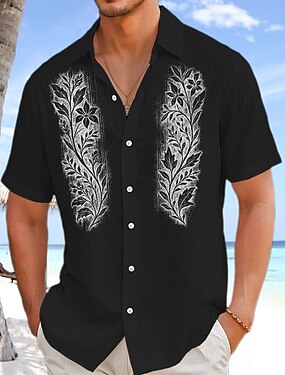 Herr Skjorta linneskjorta Casual skjorta Knapp upp skjorta Bomullskjorta Guayabera Slät Semester Hawaiisk Svart Vit Grön Aprikos Långärmad Kavajslag Vår Höst Kläder Framficka