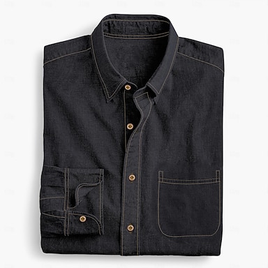 Herr Skjorta Chambray skjorta Calico skjorta Knapp upp skjorta Casual skjorta Denim blå Svart Djupblå Mörkblå Långärmad Slät Krage Dagligen Semester Kläder Mode Ledigt