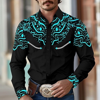 Herr Cowboy Västerländsk skjorta Knapp upp skjorta Cowboyskjorta Långärmad Vintage vilda västern-stil Formell Dagligen Helgdag Höst Vinter Vår & sommar Nedvikt Skjortor med krage Knappen uppåt