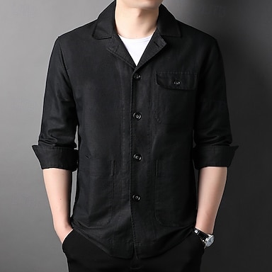 Herr Kavajjacka Linne blazer Naggkrage Vintage Lättvikt Klassisk Solid färg Linne blazer Ljus kaki Svart Skräddarsydd passform Enkelknäppt fyrknappar