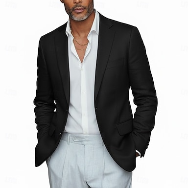 Herr Kavajjacka Linne blazer Naggkrage Mode Lättvikt Ledigt Solid färg Blazer Linne blazer Svart Vit Rodnande Rosa Skräddarsydd passform Enkelknäppt tvåknappar