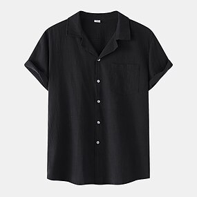 Herr Skjorta Linneskjorta Casual skjorta Bomullskjorta Slät Semester Gata Svart Vit Rodnande Rosa Blå Kortärmad Nedvikt Sommar Kläder Button-Down
