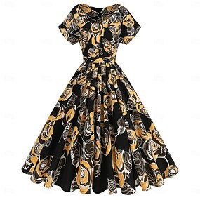 Elegant Retro / vintage Femtiotal Klänningar Maskerad Blomma Maskeradkläder Dam Karnival Nyår Maskerad Ledigt / vardag Möhippa Vuxna Klänning