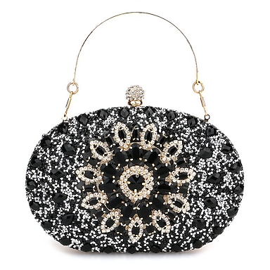 Damkutsch i polyester med ädelstensutsmyckningar, axelrem med kedja, stor kapacitet, flera färger – perfekt för bröllop och kvällsfester