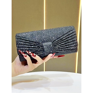 Elegant kvällskutschväska för kvinnor, polyesterskimmer med veckad design och kedjeaxelrem, flerfärgad formell handväska för bröllop, mottagningar och middagsbjudningar